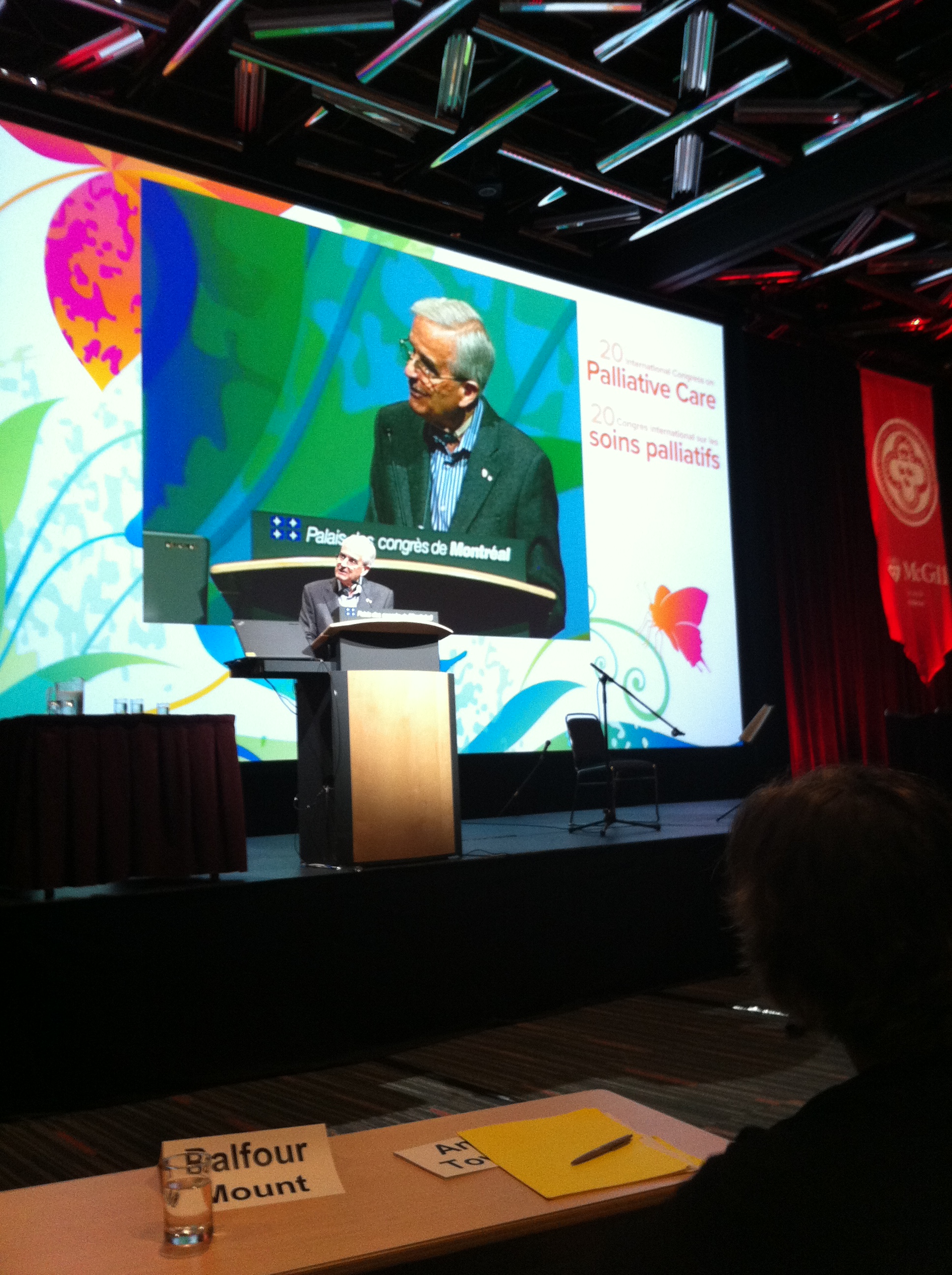 … all set in the beautiful city of Montreal, which had a decidedly European feel to it, with all the cobblestoned streets in Old Town, as well as the rapid-fire French in our ears. There were several references to the recent passage of ‘Bill 52: An Act respecting end-of-life care’ in Quebec, which legalises physician assisted death. The great Balfour Mount noted with irony the Bill’s use of the phrase ‘medical aid in dying’: ‘I thought that’s what I’ve been doing for forty years!’