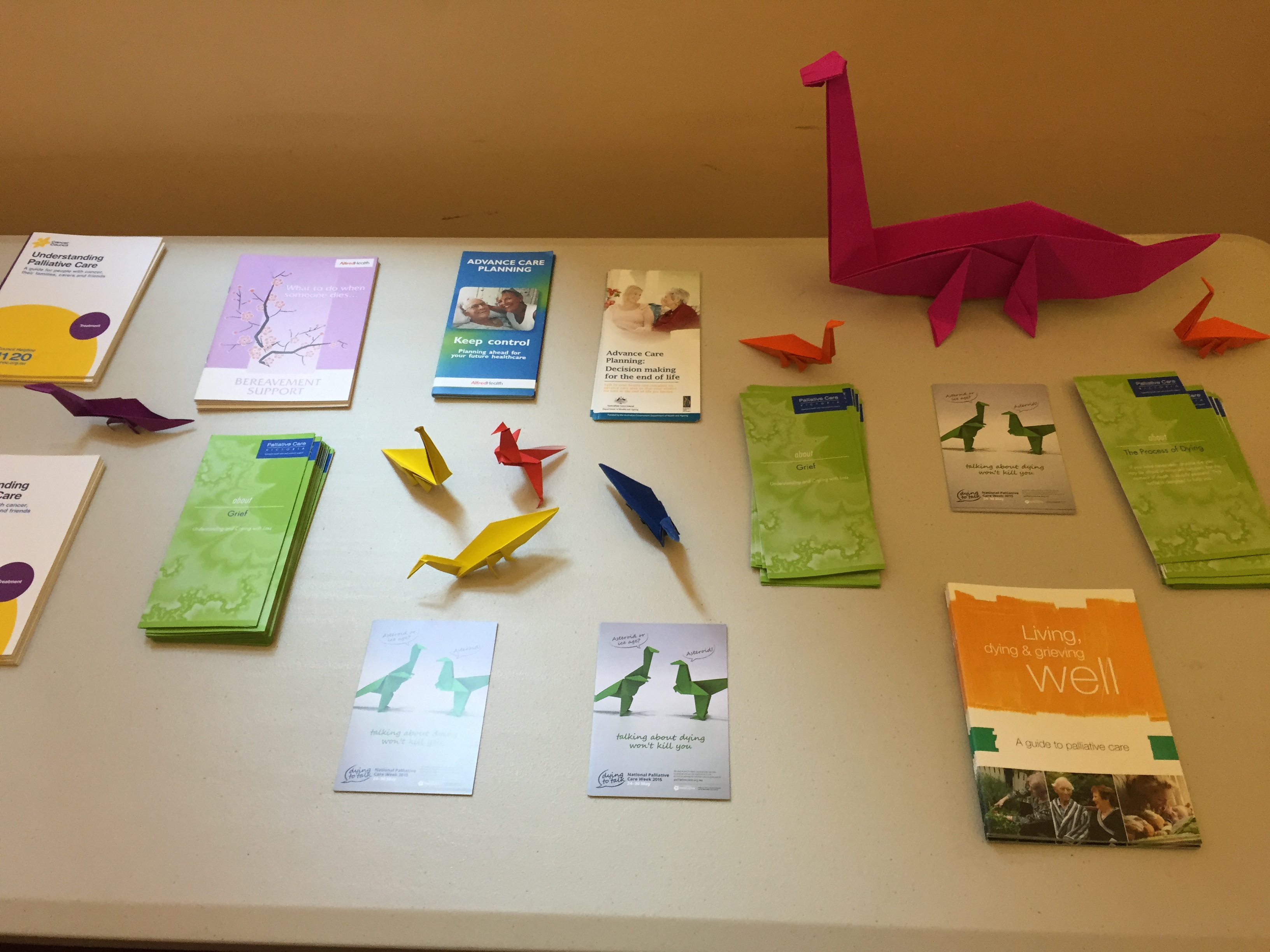 The audience, consisting of staff and patients, then shared their reflections and stories between cups of tea and bites of fresh fruit. They were also invited to take an origami dinosaur – the mascot of National Palliative Care Week 2015 – to remind them of the importance of starting the conversation on how they want to live and die with their loved ones.