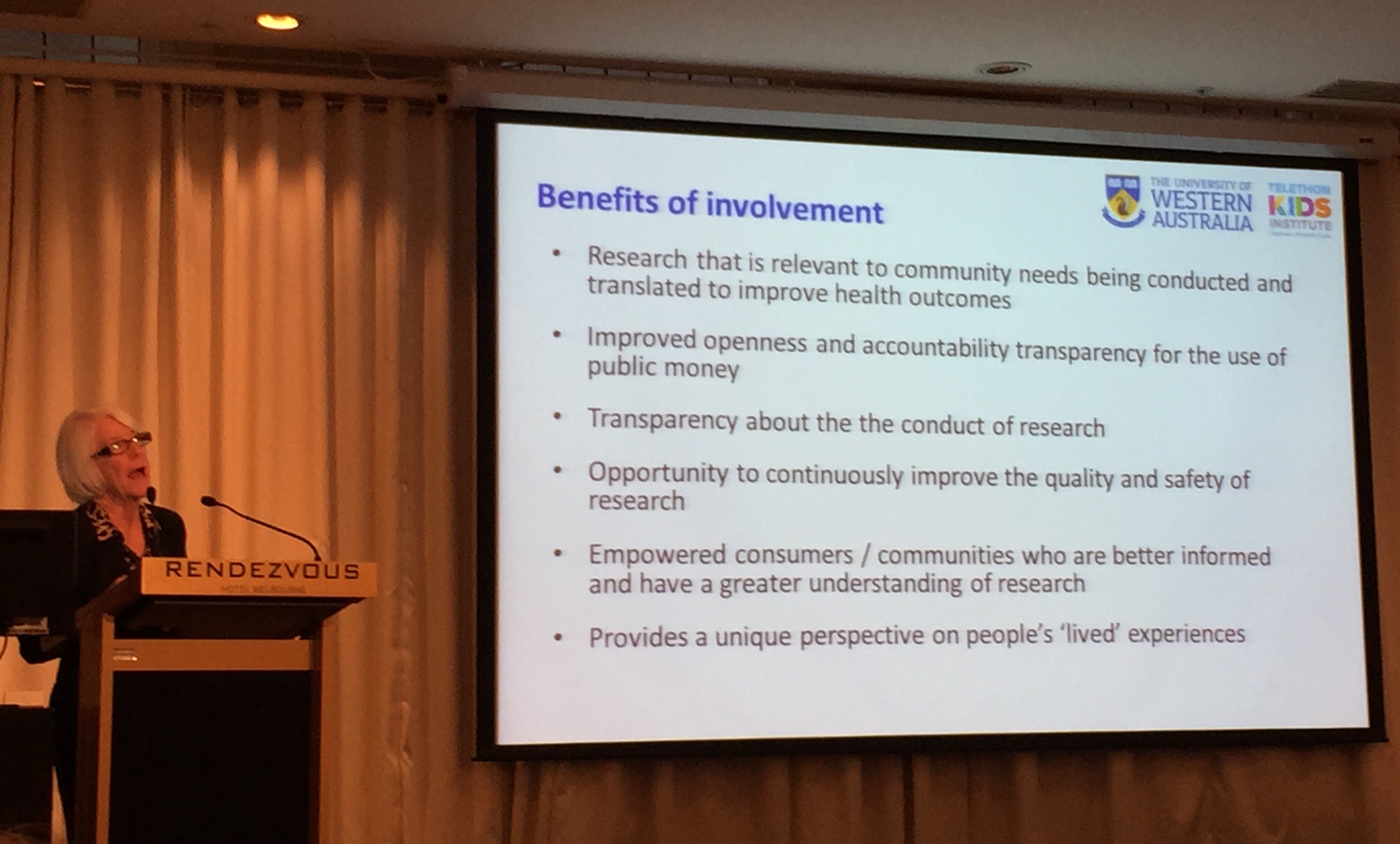 Passionate consumer representative Anne McKenzie espousing the importance of involving consumers in palliative care research during her fantastic workshop